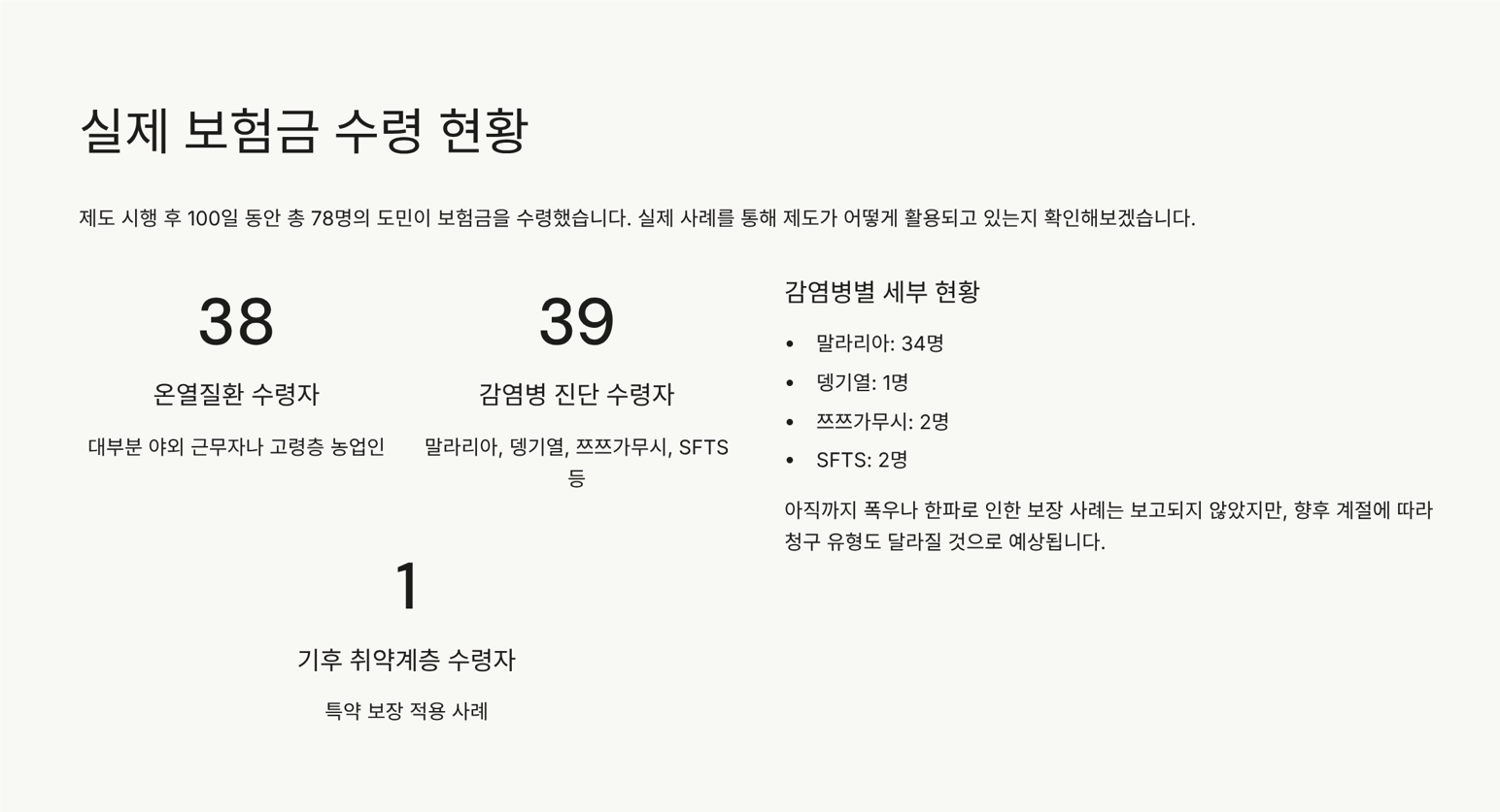 - 수령 사례: 2025년 7월 기준 총 78명 보험금 수령