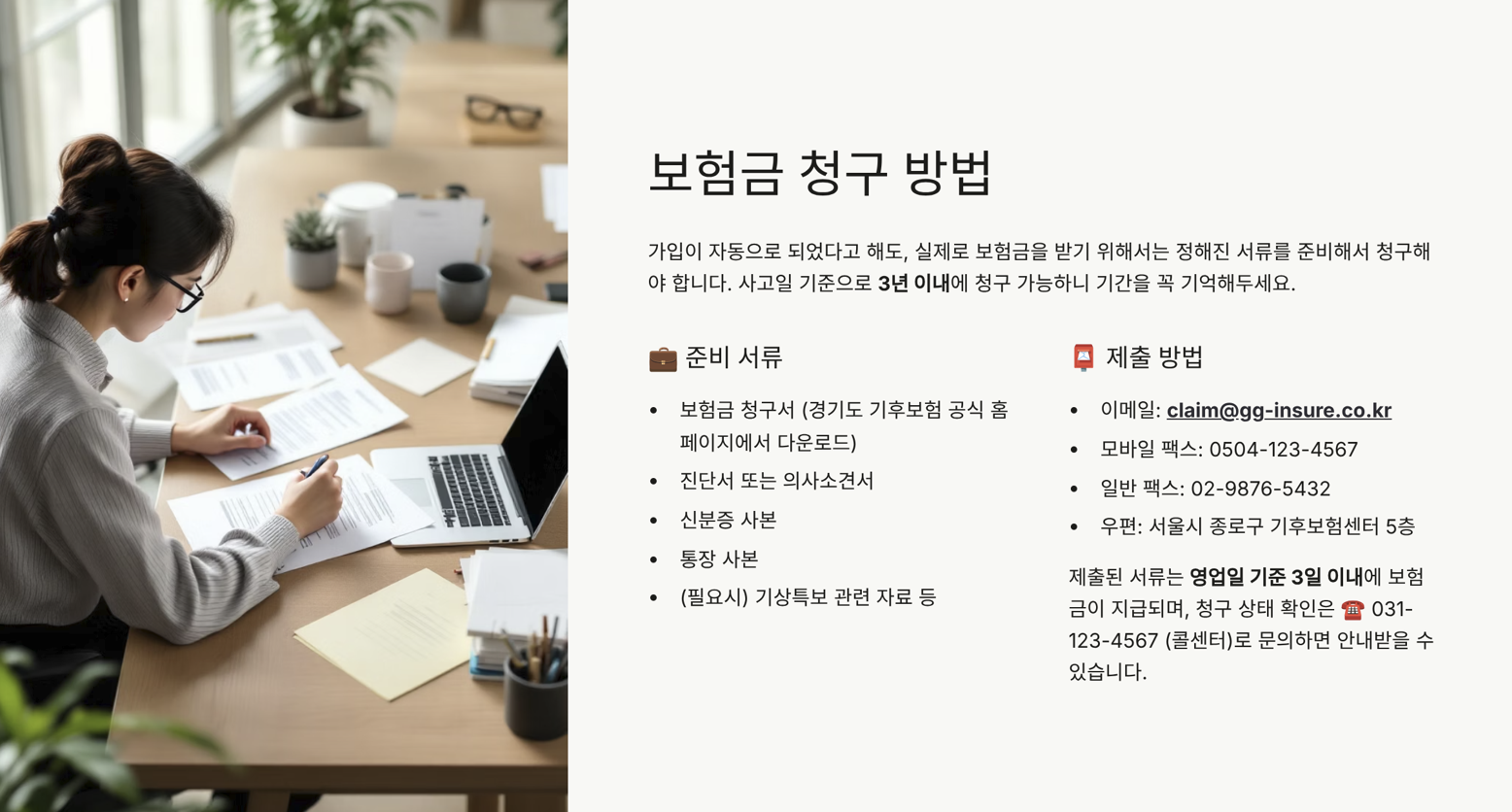👉 자세한 내용과 청구서 양식은 경기도 기후보험 공식 홈페이지에서 확인하실 수 있어요.
