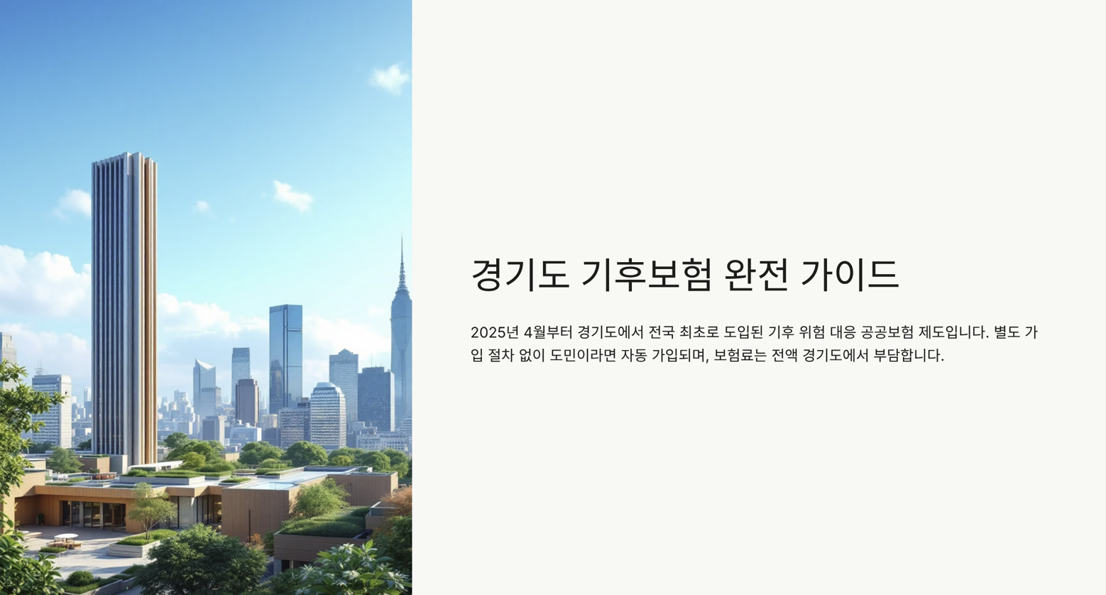 2025년 4월부터 경기도에서는 전국 최초로 기후 위험 대응을 위한 공공보험 제도, ‘경기도 기후보험’을 전면 도입했어요.