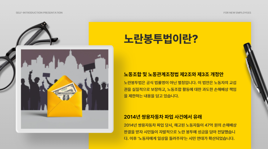 이 글이 노란봉투법을 이해하는 데 조금이나마 도움이 되셨기를 바랍니다.