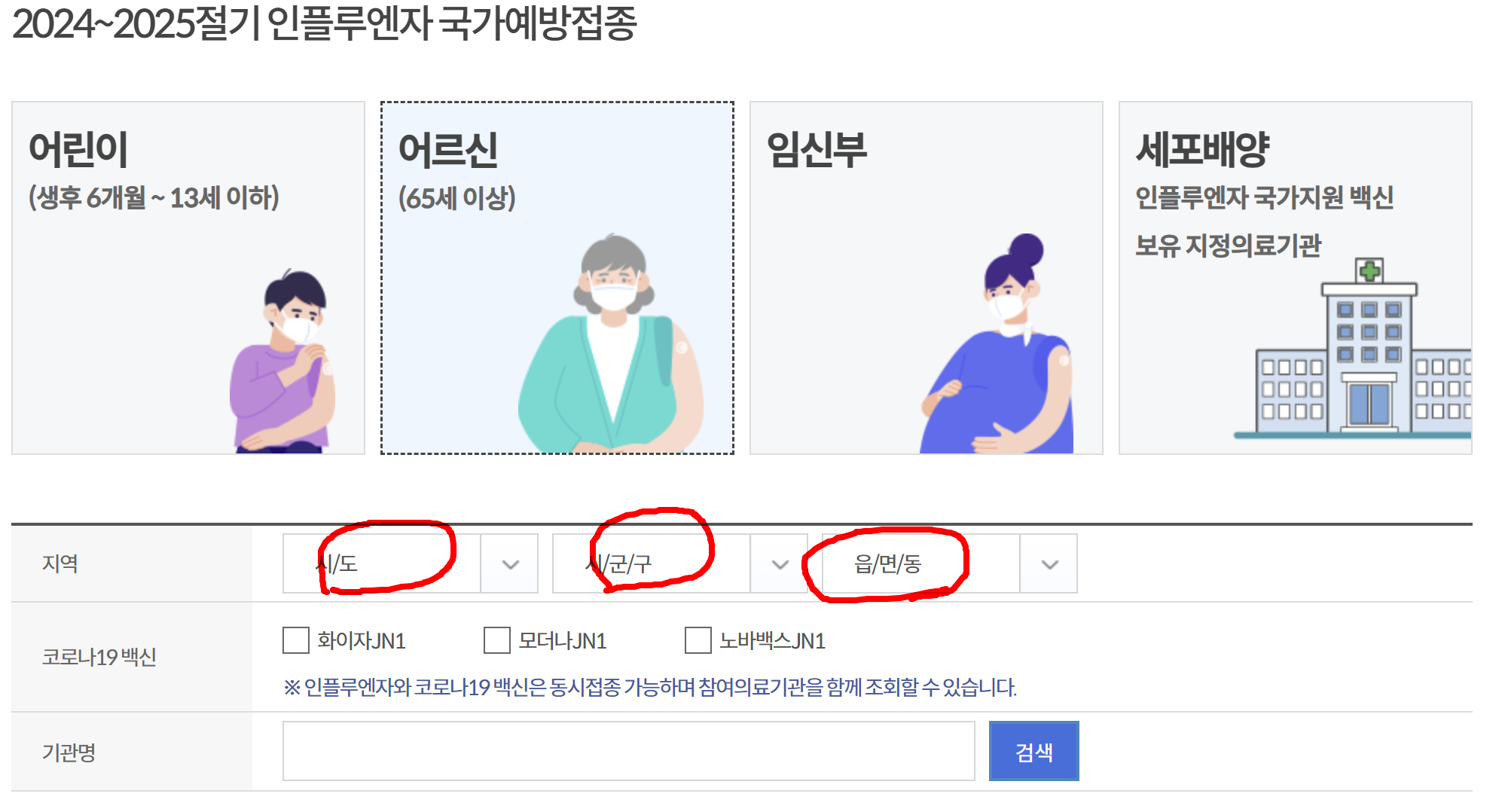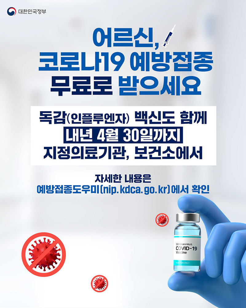 - 전국 지정 의료기관 및 보건소에서 주소지와 관계없이 무료 접종이 가능합니다.