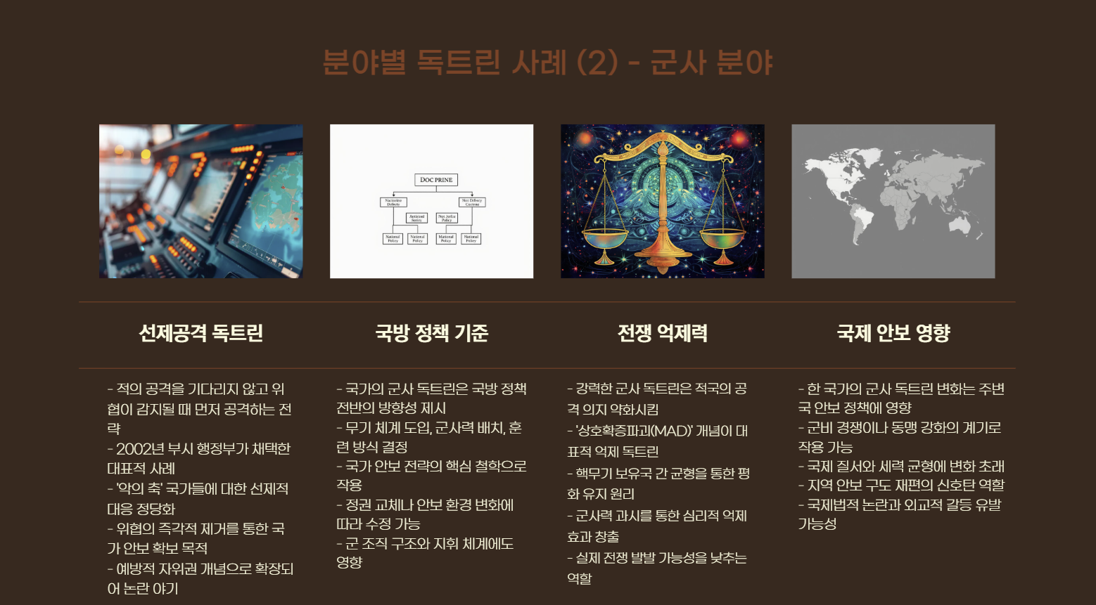 군사 영역에서도 독트린은 중요하게 다뤄집니다.