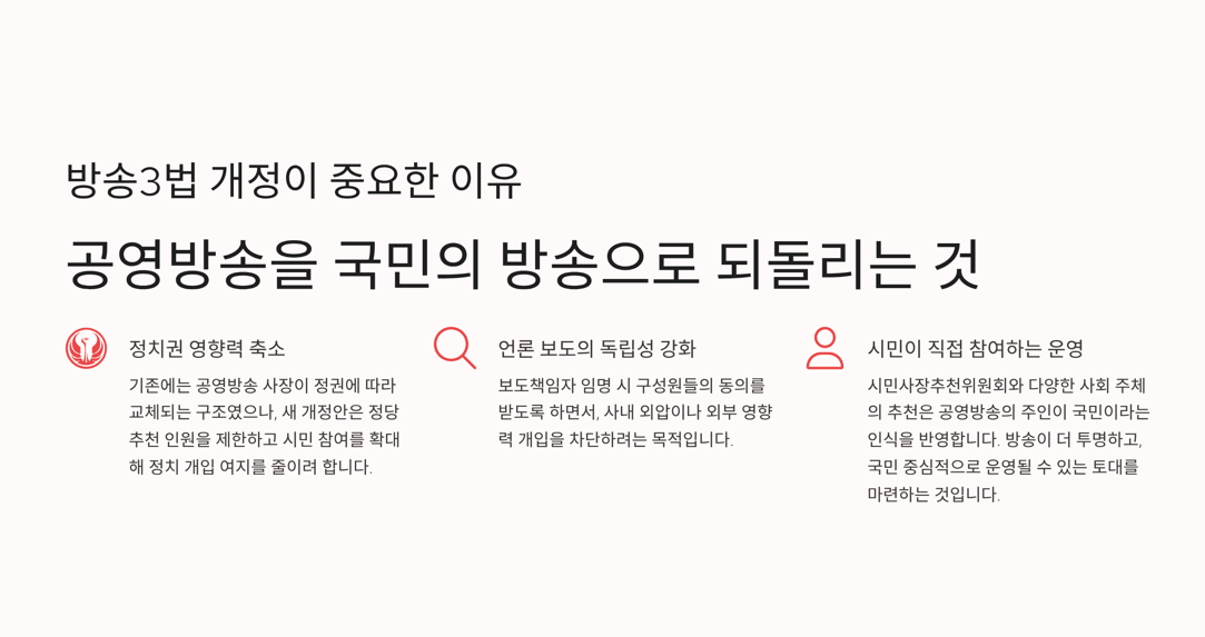 - 방송이 더 투명하고, 국민 중심적으로 운영될 수 있는 토대를 마련하는 것이죠.