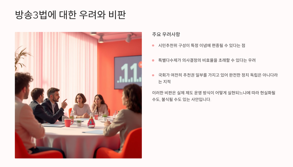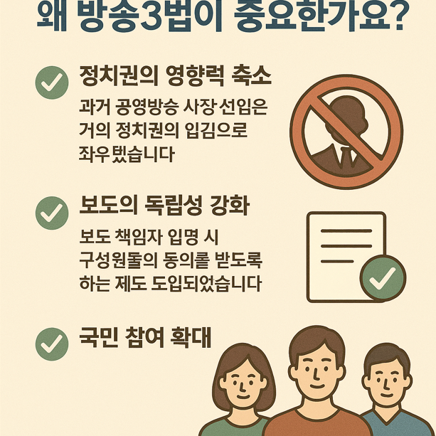 이번 글에서는 방송3법이란 무엇인지, 왜 필요한지, 구체적으로 어떤 내용이 담겨 있는지를 누구나 이해할 수 있도록 알기 쉽게 정리해드릴게요.