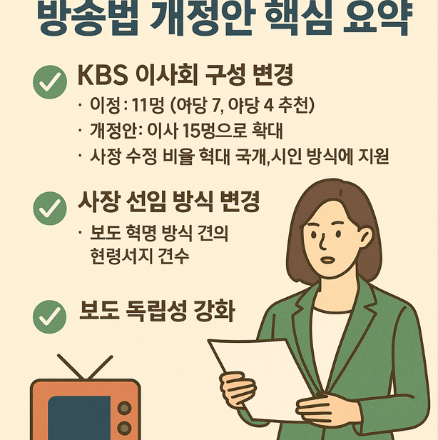 - 사장 선임 역시 특별다수제 적용 대상이며, 보도 책임자 임명 시 내부 구성원들의 동의 절차도 새로 도입됩니다.