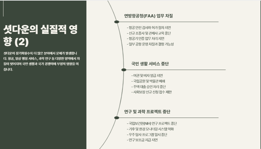 뿐만 아니라 셧다운이 장기화되면 항공기 결항, 행정 서비스 마비,