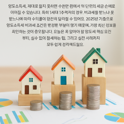 2025년 기준으로 양도소득세 비과세 조건은 변경된 부분이 많기 때문에, 가장 최신 정보를 확인하는 것이 중요합니다.