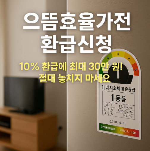 2025년 8월 13일부터 시작된 ‘으뜸효율가전 환급사업’은 고효율 가전제품을 구매한 소비자에게 최대 30만 원의 환급을 제공하는 정부 지원제도입니다. 예산 소진 시 조기 종료되므로 빠른 신청이 핵심입니다.
