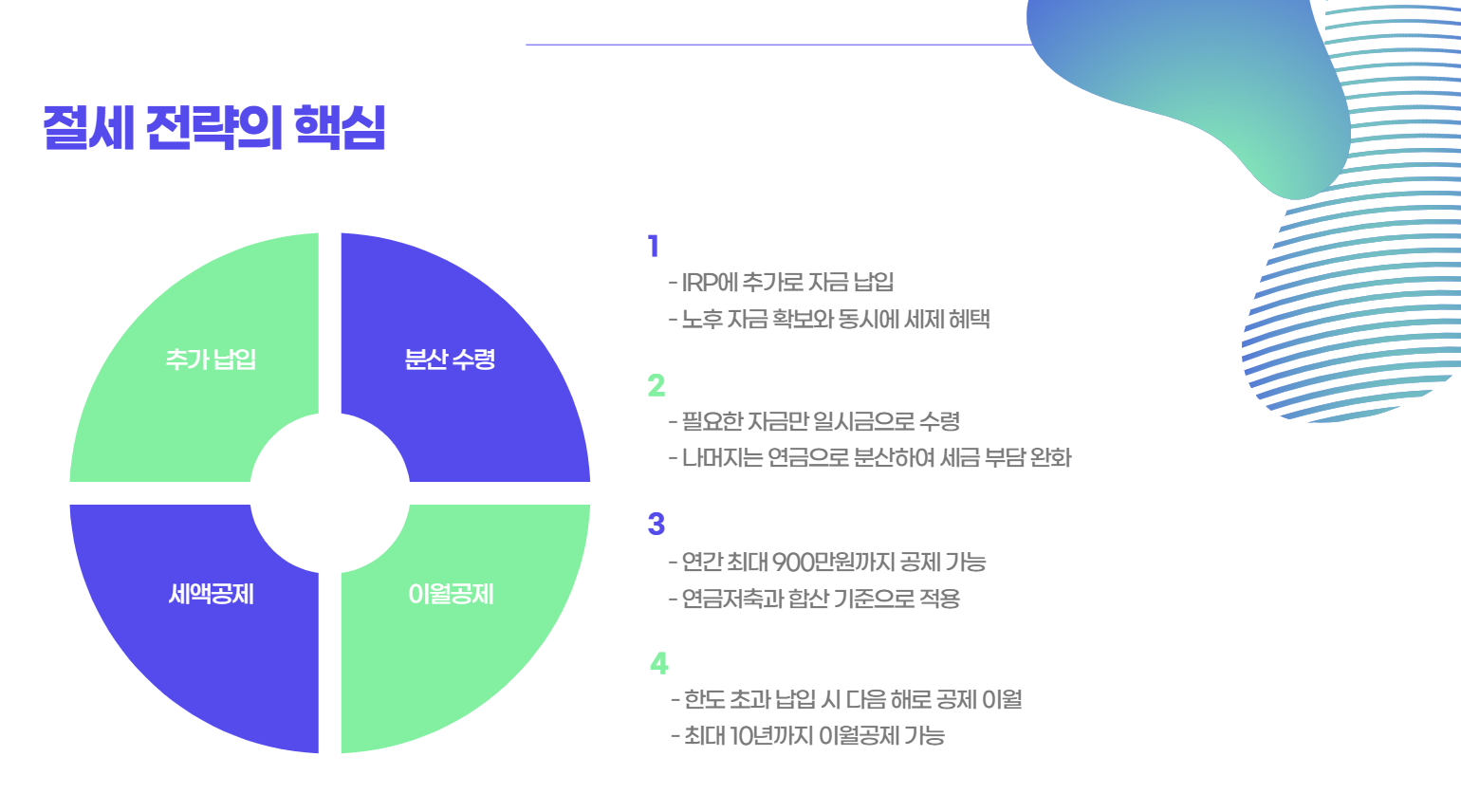 절세 전략의 핵심은 '분산 수령 + 추가 납입'