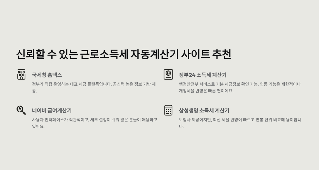 6. 신뢰할 수 있는 근로소득세 자동계산기 사이트 추천