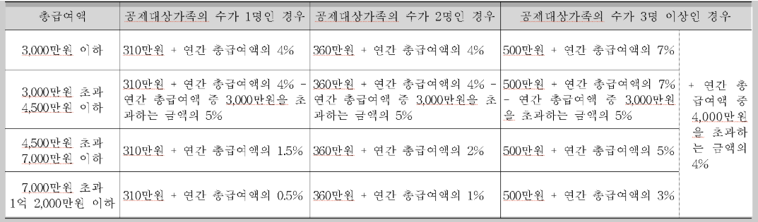 - 공제 항목 일부 조정