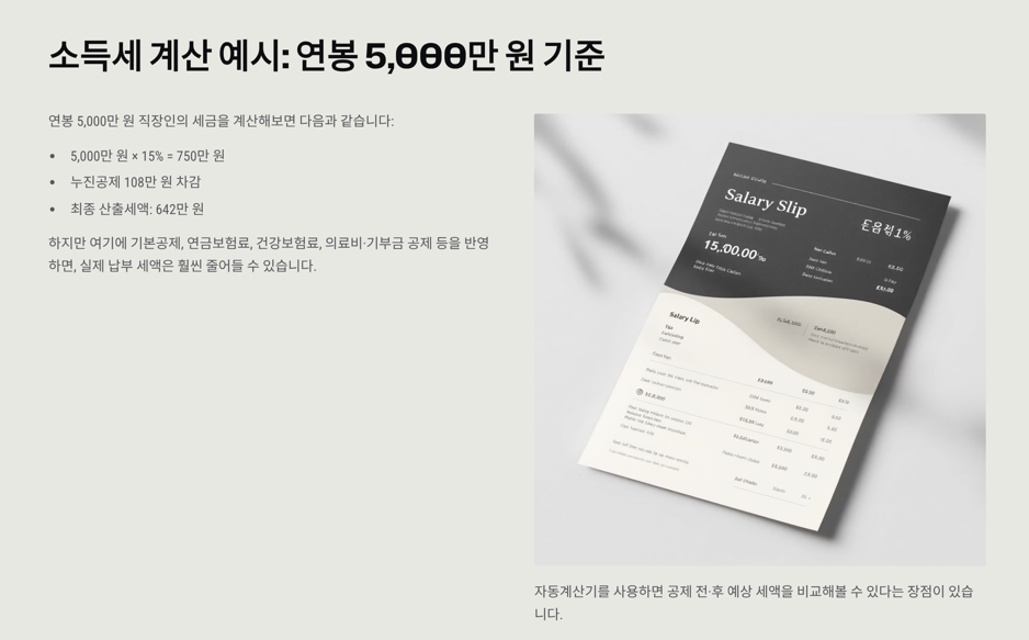 4. 소득세 계산 예시: 연봉 5,000만 원 기준