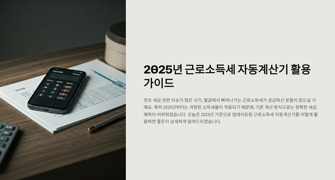 요즘처럼 연초 세금 관련 이슈가 많은 시기, 월급에서 빠져나가는 근로소득세가 궁금하신 분들이 많으실 거예요. 특히 2025년부터는 개정된 소득세율이 적용되기 때문에, 기존 계산 방식으로는 정확한 세금 예측이 어려워졌습니다.
