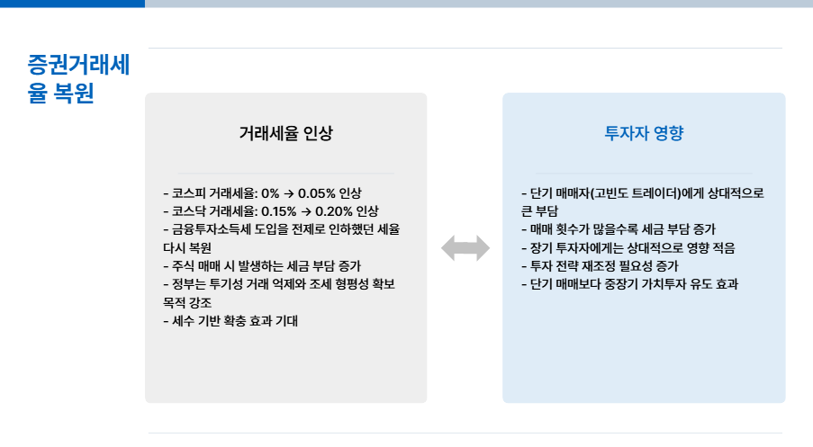 4. 증권거래세율 복원: 코스피·코스닥 모두 인상