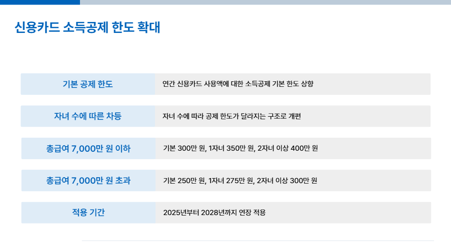 6. 신용카드 소득공제 한도 확대: 자녀 수에 따라 차등 적용