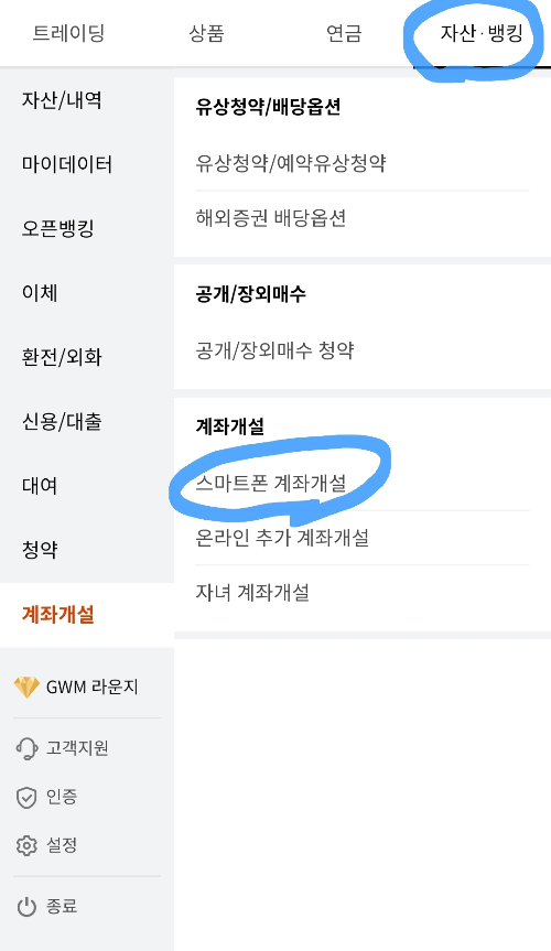 - '계좌개설' 항목 클릭